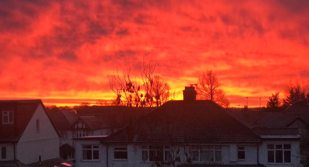 The red sky warning came true in London today, 24 January 2021. Look at the two pictures taken in London this morning: A red dawn followed by snow a few hours later!