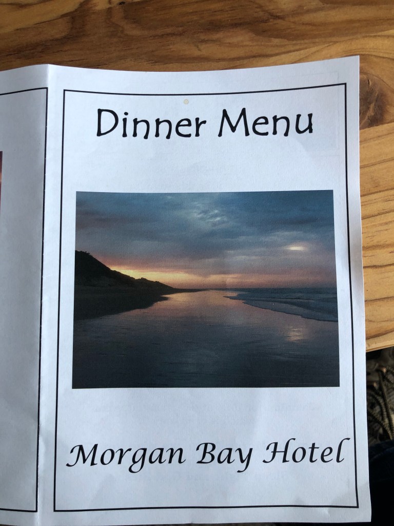 Here is the Dinner Menu which includes evening news and contains a personal welcome to the four of us. And yes, the meal was wonderful as is the view from our room. We are so close to the sea we hear the surf. This post was not solicited! It is just great here. And how about this? That warm welcoming touch was started 50 years ago by Sue Warren-Smith, the mother of the owner. Scroll down for 4 pictures.