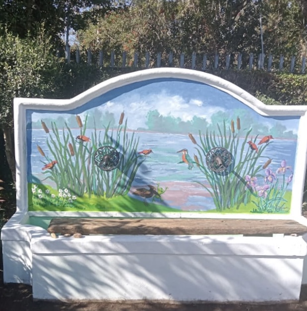 Sometimes we are fortunate to come across a genuine, thoughtful labour of love. Here is an inspiring example: A beautifully decorated garden seat in a retirement village in Hillcrest near Durban in South Africa. The artist is a (clearly very kind) professional painter.
